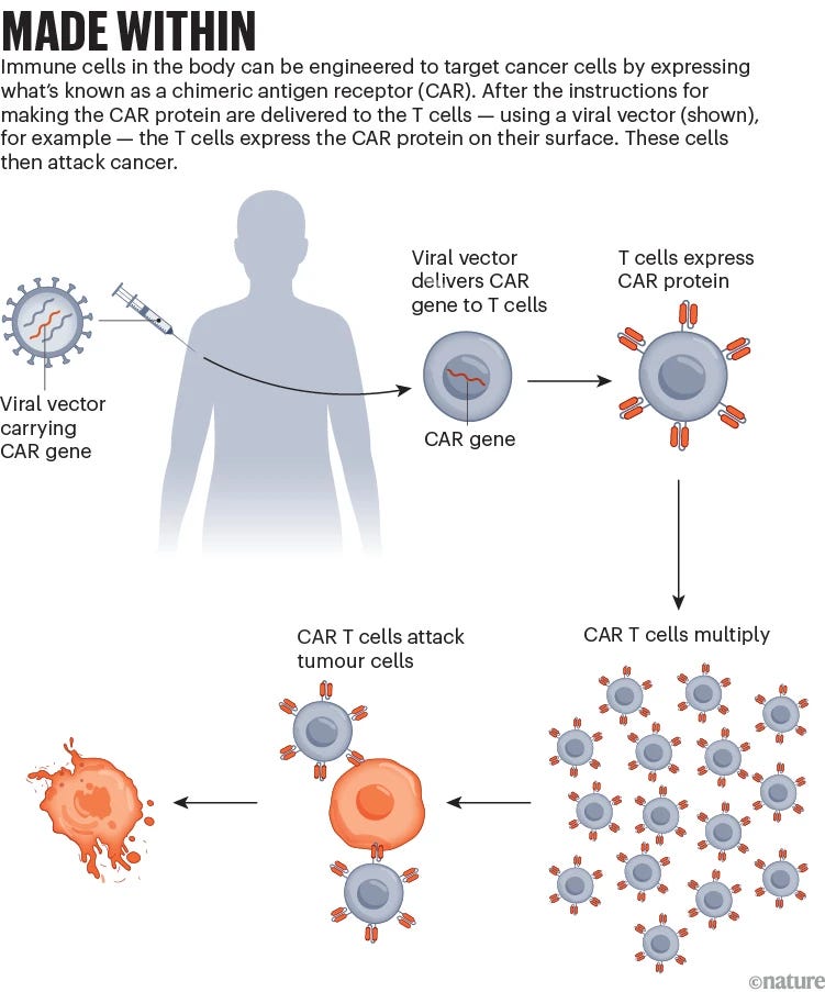 A recent article in Nature titled "Powerful Cancer-Fighting Cells Will Soon Be Cheaper and Quicker to Make" highlights an exciting development in cancer treatment: in vivo CAR-T therapy. This approach aims to bring cell engineering directly into patients, which could help overcome many challenges faced by current treatments.